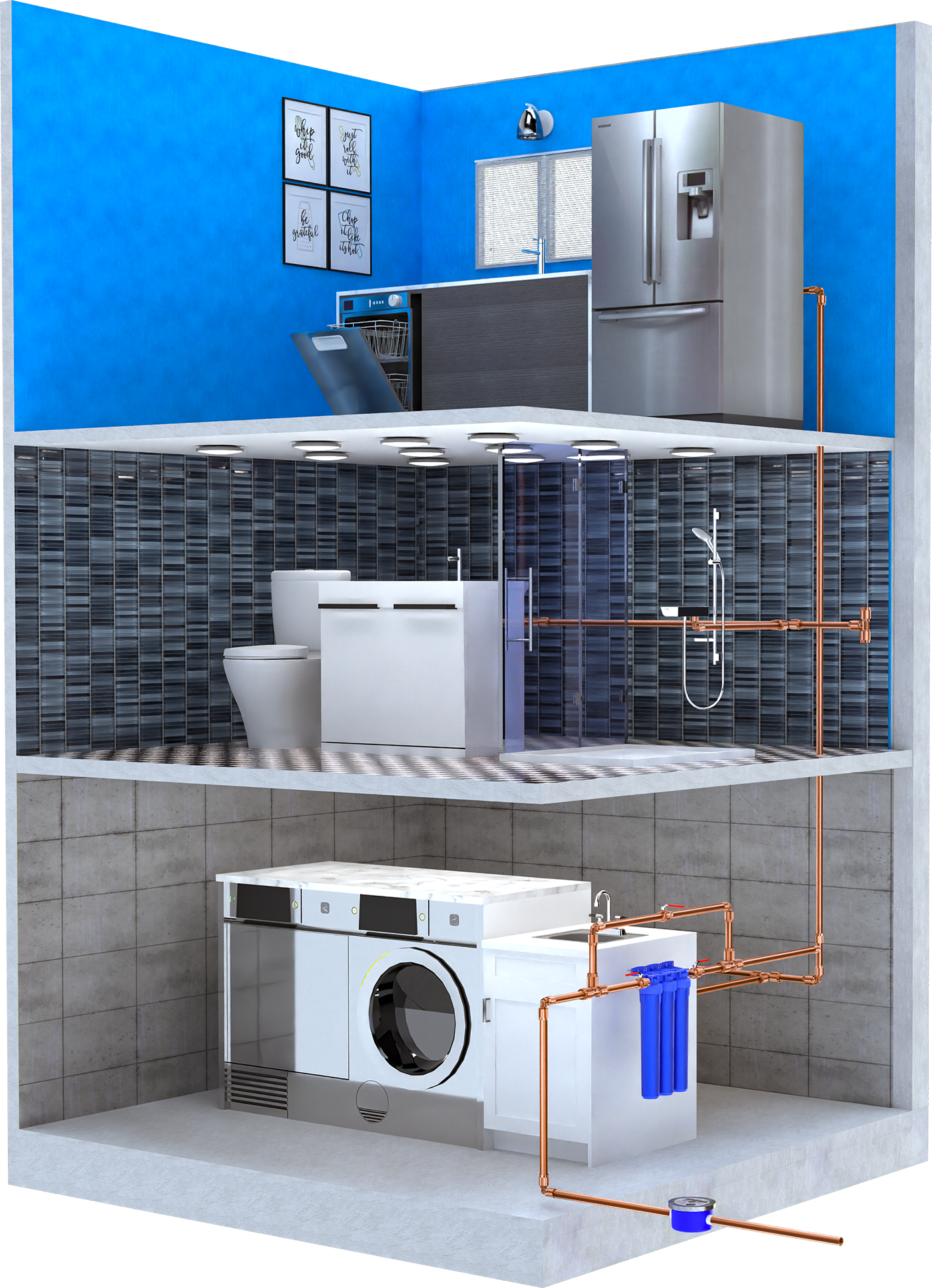 Our small, (2.5”x 10” and 20” models) yet mighty systems bring cutting-edge filtration technology to your entire home. Designed and assembled in the USA, our system greatly reduces harmful contaminants without producing wastewater discharge.