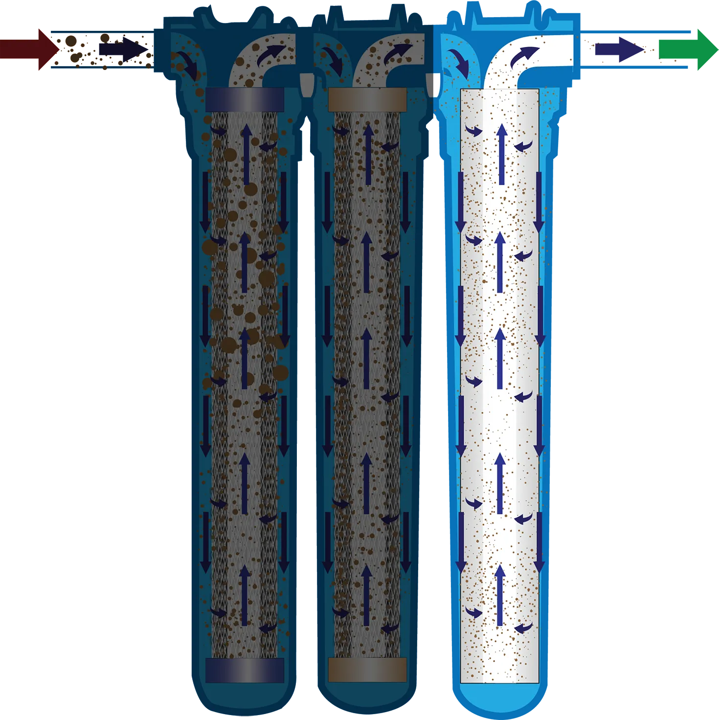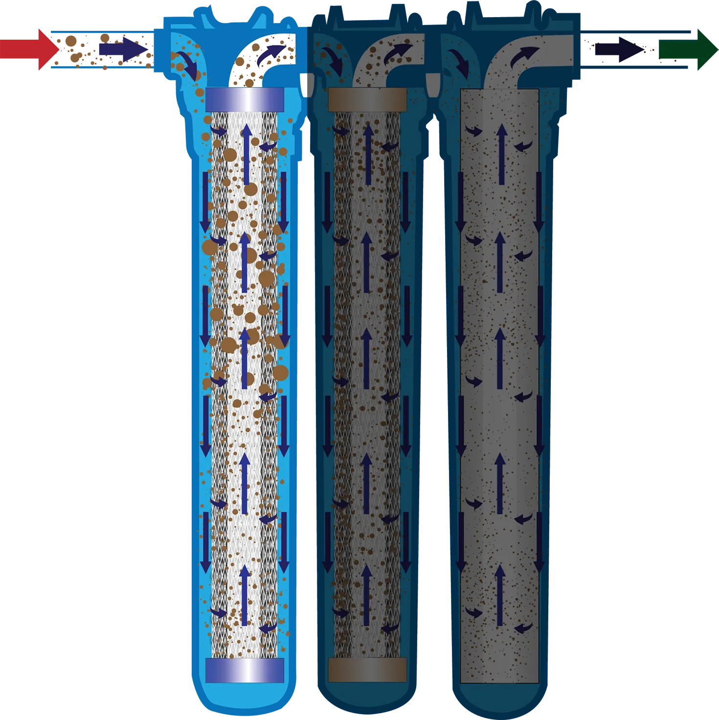 The filtration technology used in our system captures contaminants allowing filtered water to pass through. The high capacity filters make this possible without a significant reduction in flow rate. This approach eliminates the need for wastewater disposal, making our systems more environmentally friendly, efficient, and less disruptive to install.