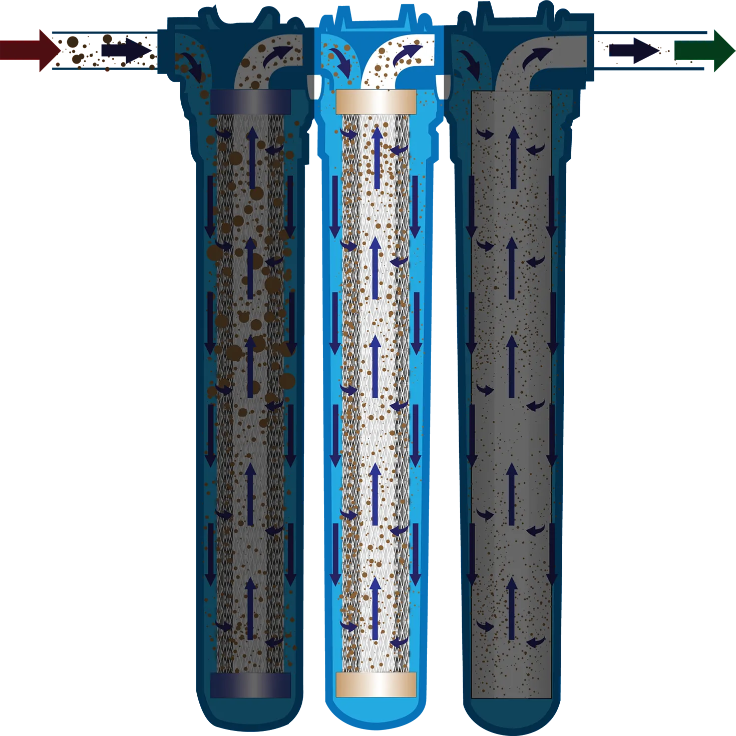 Optimized dirt holding capacity traps large particulate. This cartridge also reduces scale.